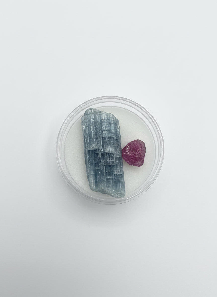 - Perky Box with Ruby & Kyanite Blade: Professional 1.25" specimen box containing a hand-selected Wyoming ruby and kyanite blade—ready for you to create your own specimen display or treasure collection
