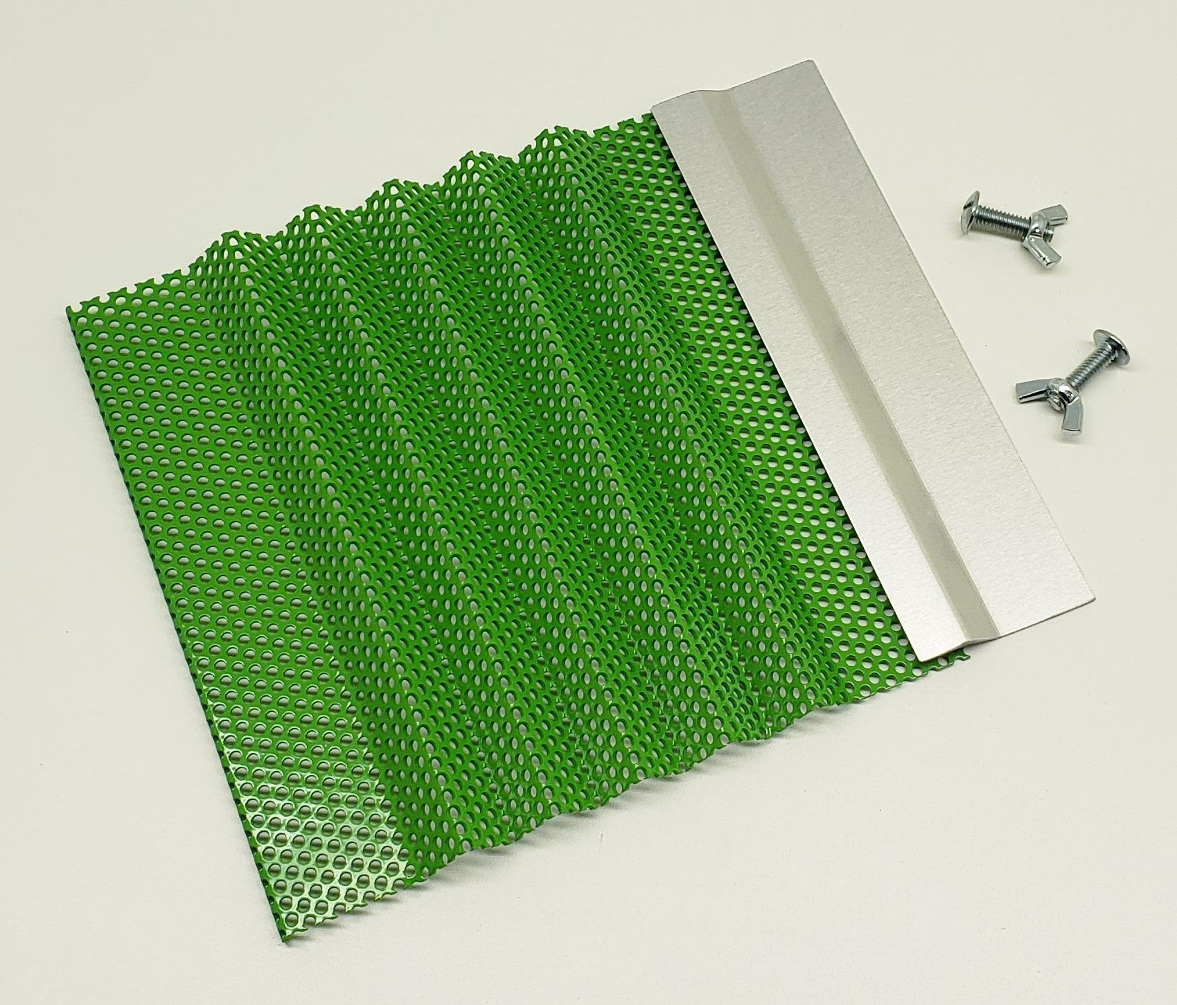 16 Ga. 1/4" perforated sheet, w/ 5x 3/4" tall zigzag riffles for widths 16"-20"-24"
